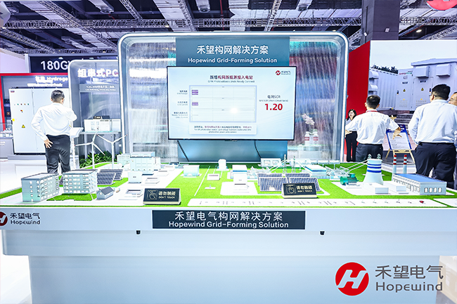 本次展會現(xiàn)場,禾望電氣不僅以交互式的沙盤展示了集“風(fēng)-光-儲”全場景于一體的構(gòu)網(wǎng)型解決方案,全面展現(xiàn)了自身富有競爭力的自主構(gòu)網(wǎng)控制技術(shù),還在展臺設(shè)立了精彩的演講,深度講解了禾望構(gòu)網(wǎng)型解決方案的具體內(nèi)容。現(xiàn)場氣氛熱烈,充分體現(xiàn)了禾望風(fēng)光儲氫領(lǐng)導(dǎo)品牌的綜合實力。