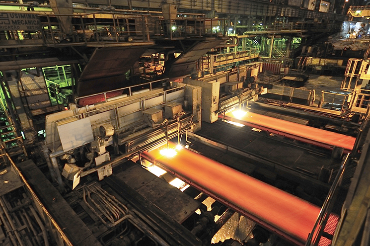 熱軋是一種生產(chǎn)鋼材的方式。用連鑄板坯或初軋板坯作原料,經(jīng)步進式加熱爐加熱,高壓水除磷后進入粗軋機,粗軋料經(jīng)切頭、尾、再進入精軋機軋制,終軋后即經(jīng)過層流冷卻和卷取機卷取,成為直發(fā)卷。