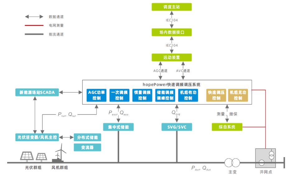 禾望新能源場(chǎng)站快速調(diào)頻調(diào)壓系統(tǒng)可配合場(chǎng)站機(jī)組群控平臺(tái)實(shí)現(xiàn)AGC/AVC閉環(huán)控制,系統(tǒng)具備一次調(diào)頻、慣量響應(yīng)、快速調(diào)壓、風(fēng)儲(chǔ)/光儲(chǔ)協(xié)調(diào)控制等功能。產(chǎn)品聚焦于改善新能源場(chǎng)站涉網(wǎng)特性,嚴(yán)格遵循各地方電網(wǎng)對(duì)新能源場(chǎng)站的技術(shù)規(guī)范和要求,性能優(yōu)異,穩(wěn)定可靠。
