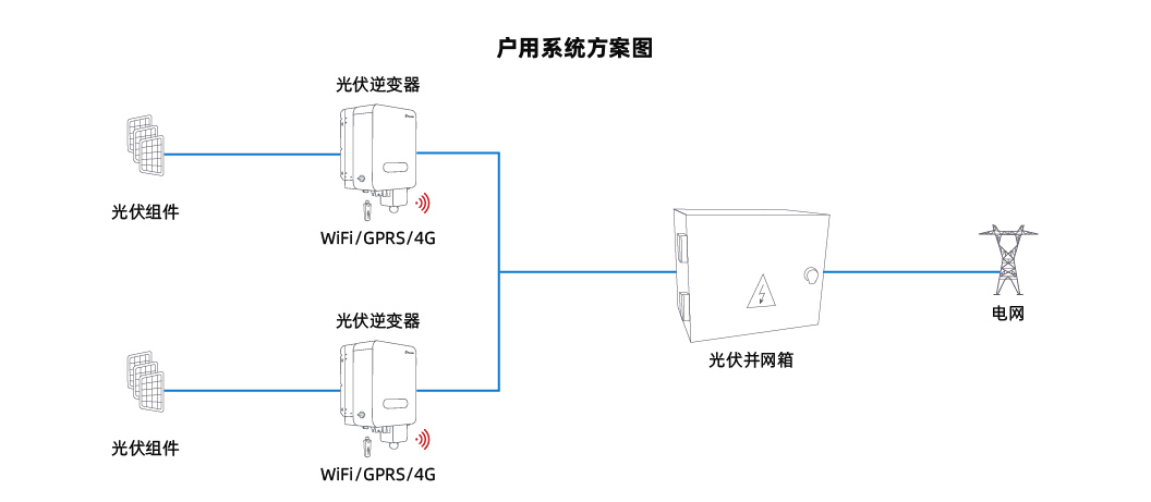 戶用光伏項目一般功率比較小,站點比較分散,均采用無線通訊實現(xiàn)遠(yuǎn)程監(jiān)控。